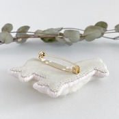 ブローチの側面は、刺繍糸でひと針ひと針丁寧に刺繍した巻かがりで縫っており、