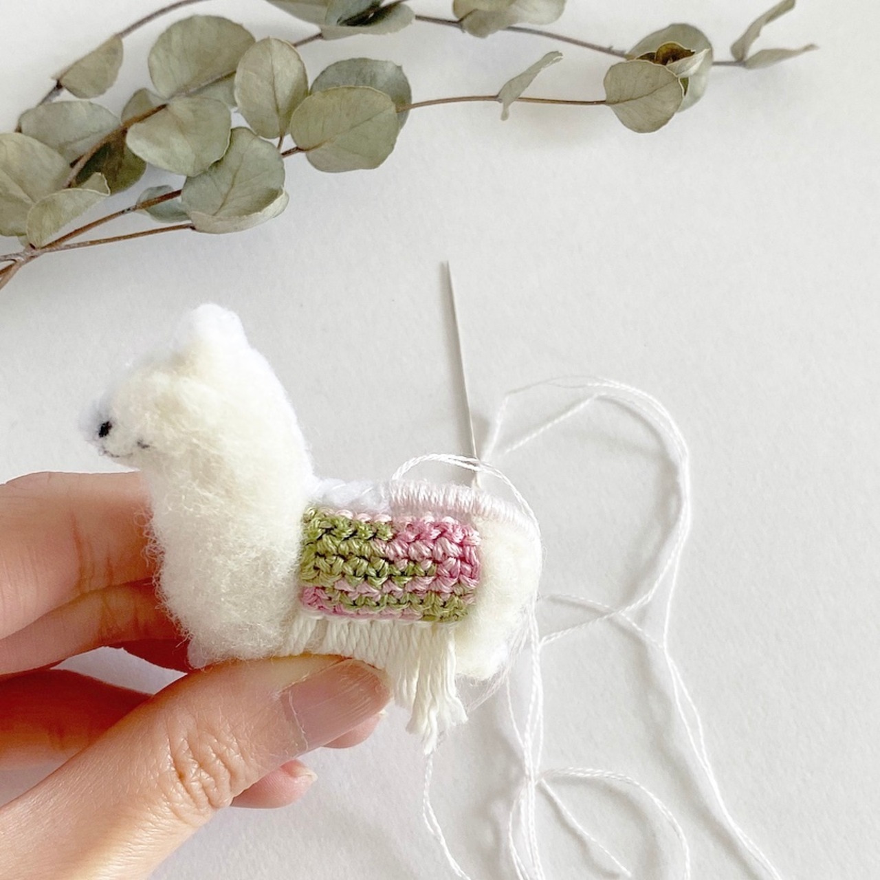 春のお花畑をルンルンとお散歩しているようなアルパカブローチです