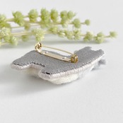 ブローチの側面は、刺繍糸でひと針ひと針丁寧に刺繍した巻かがりで縫っており、