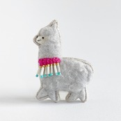オシャレをしてルンルンとご機嫌なアルパカブローチです