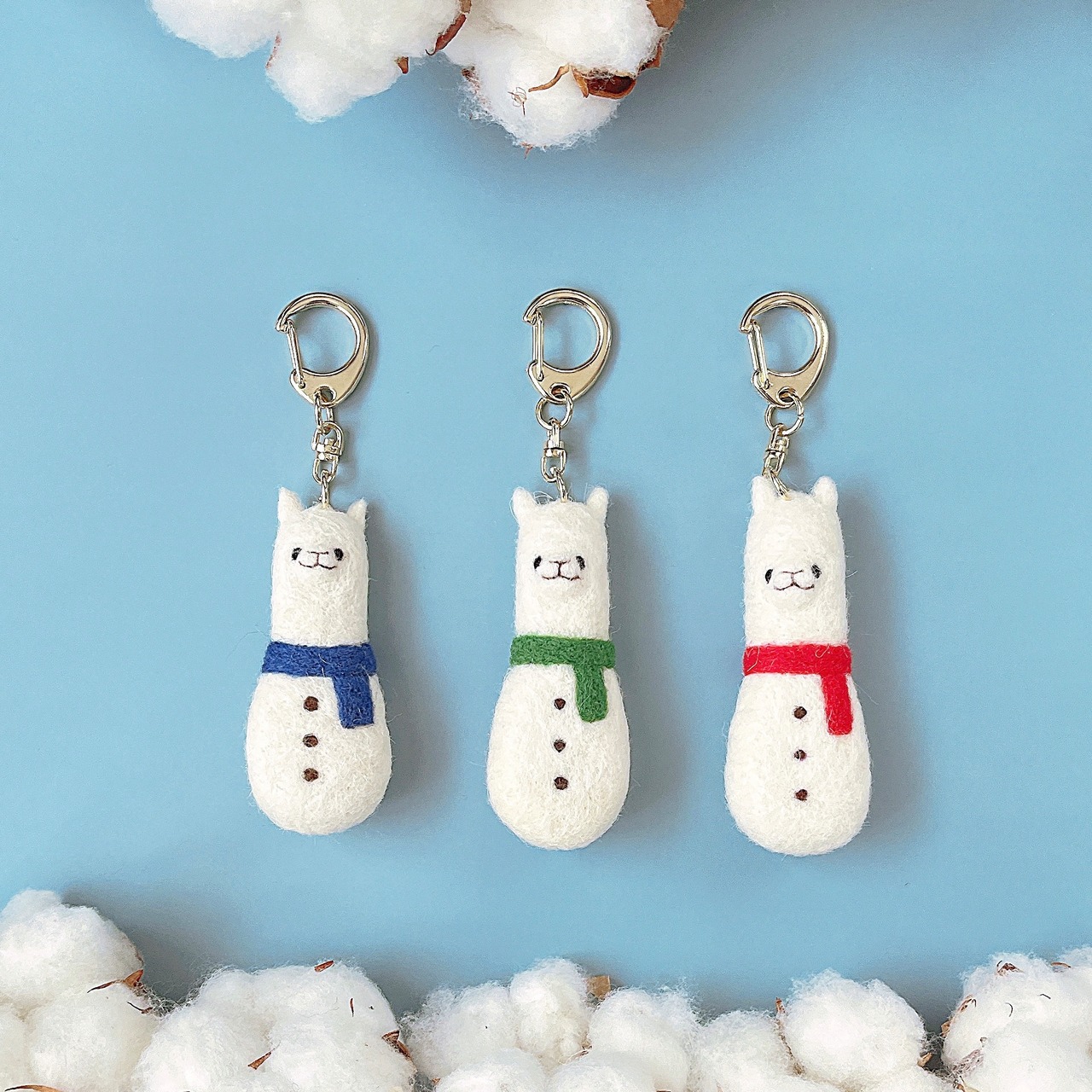 冬仕様の雪だるまアルパカキーホルダー